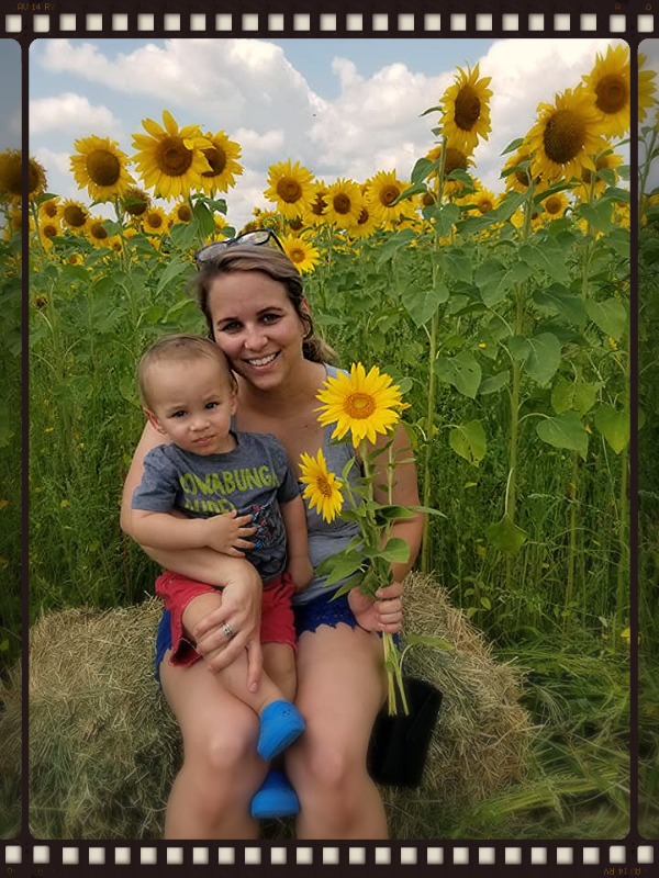and her son Kaydan. A visit to the sunflower